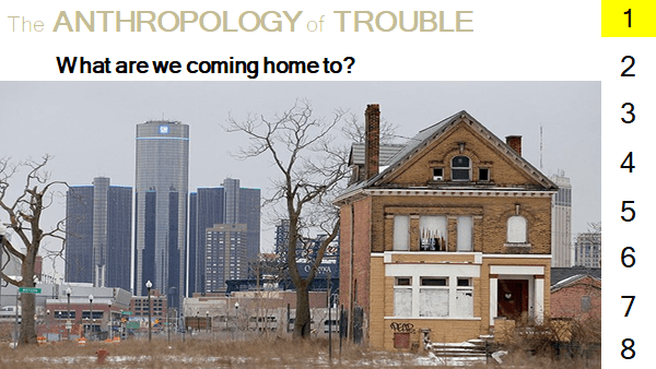 Let’s start with the trouble we come home to. To state the obvious: We’re returning to a society in a moment of disarray. It’s certainly not collapsing. In many ways its institutions remain resilient. So are its people. But like my favorite worn-out sweater, it’s unraveling.[ii]