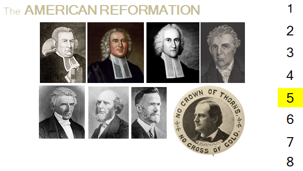 Not surprisingly, as Kittlestrom notes, among these American reformist preachers were “the first people in the world to call themselves liberals” (2009:5). But the word “liberalism” is applied liberally in this tradition. We can trace it back to the great proto-Unitarians like Charles Chauncy and Jonathan Mayhew, but also to Jonathan Edwards, and later to the ecumenical openness of Barton Stone and Alexander Campbell, and to Charles Finney’s revivals. And we can trace it forward to Walter Rauschenbush’s Social Gospel, of course, but also to the fundamentalist social crusader William Jennings Bryan, who famously claimed he would not let the nation’s working men and women be “crucified on a cross of gold.”