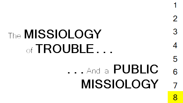Mostly what I’m saying is that, to restate the obvious, missiology comes back home to trouble. We repatriate our work to the home front to confront our society’s vexations and agonies, to missiologize public discourse for the public good. But we also do it to make our public witness intelligible, in this case intelligible to a liberal society in the midst of its own unraveling.